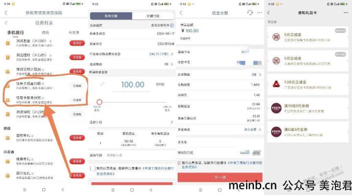 现金分期,分100,3期,手续费1.5,抽5立减金