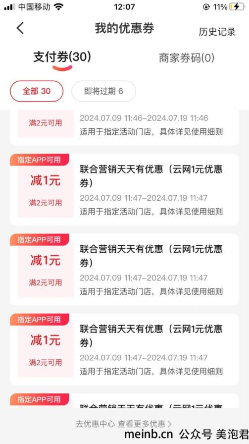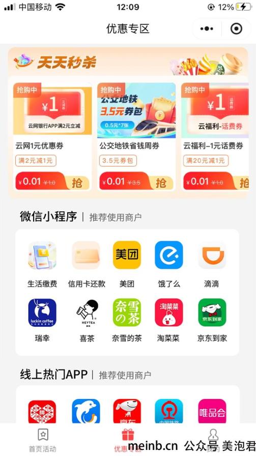 江西地区的兄弟看过来,之前app购买了少妇U惠江西20张满2减1优惠卷的继续去买20张一起总共40毛,购买路径,U惠江西小程序里,优惠专区,天天秒杀,购买20张,一天用10张,实测可以用,顺便把那个签到抽奖任务也做一下,购买一定要选择Y闪付支付,微信支付不行,有任何不懂的可以评论区留言,
