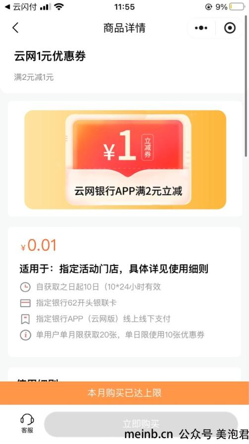 江西地区的兄弟看过来,之前app购买了云闪付U惠江西20张满