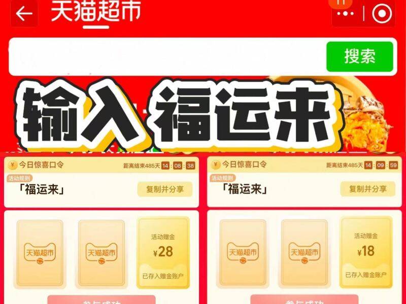 ❗10点00 猫超限时限量加码天猫超市搜【福运来】每天可抽1元/2元/3元/5元共计2万张!概率中猫卡哈当月未过下单 概lv更高中2哦