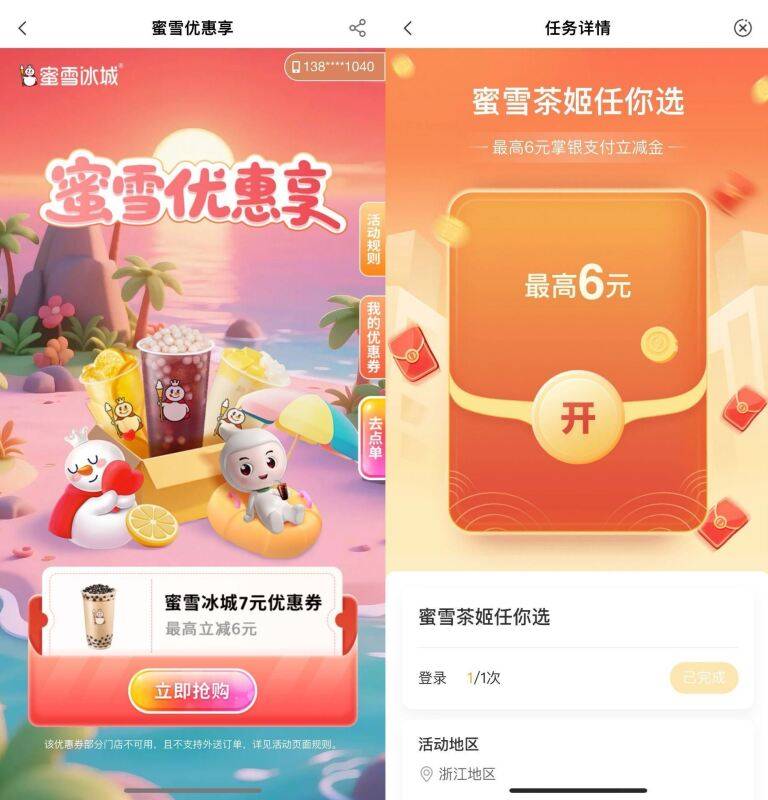 【农.行1亓买7亓蜜雪冰城抵扣券】