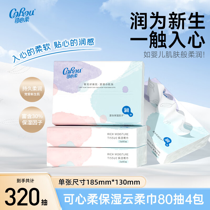 可心柔(COROU)V9 如霜纸 3层 80抽*4包