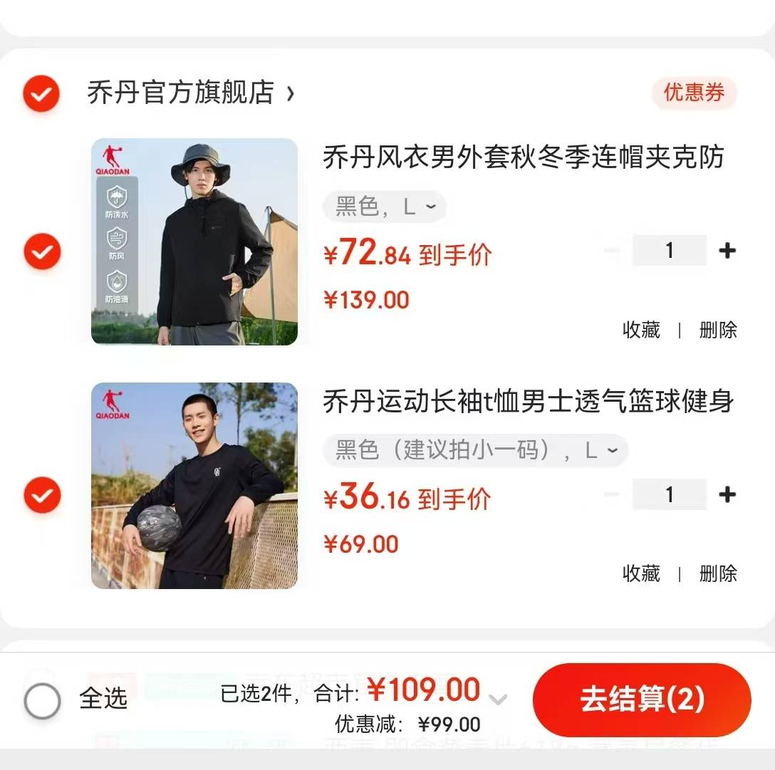 补贴好忦!乔丹男装先领200-20补贴巻https://u.jd.com/018IaN5长袖T恤+防风夹克https://u.jd.com/0G88oQshttps://u.jd.com/0O8KpG8——————♦109亓!有需挑挑了