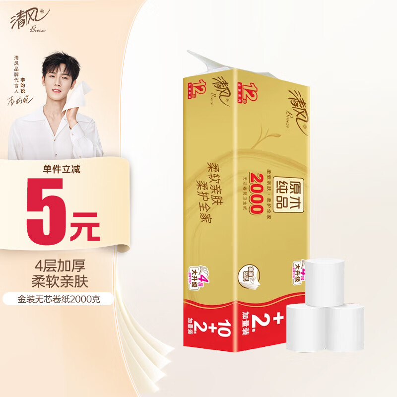 清风 无芯卷纸 原木金装4层加厚2000克/12卷