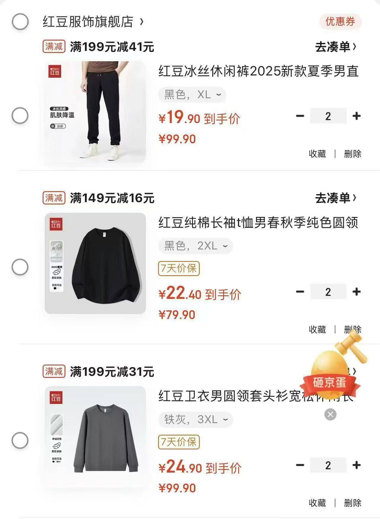 红豆官旗 补贴神价先领 110-40 补贴券http://z.mtpop.com/4e2v任选两件圆领卫衣49.8 元https://u.jd.com/B1QAwCH任选两件长袖 T恤 44.8 元https://u.jd.com/BGQZmCI任选两件冰丝长裤 39.8 元https://u.jd.com/BDqTgSW折才一二十一件 快去挑挑吧[机智]