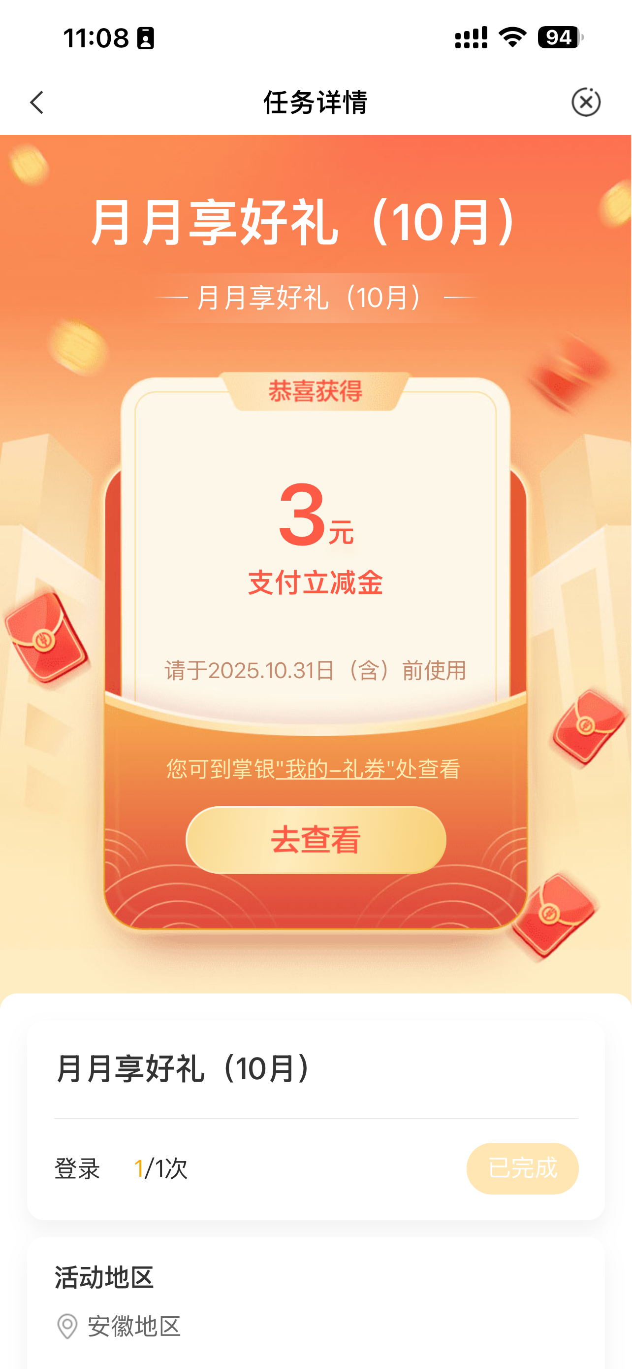农行领到3元立减金有人领到10元农行不是刚刚抖音立减金领取失败嘛在农行app 首页下滑