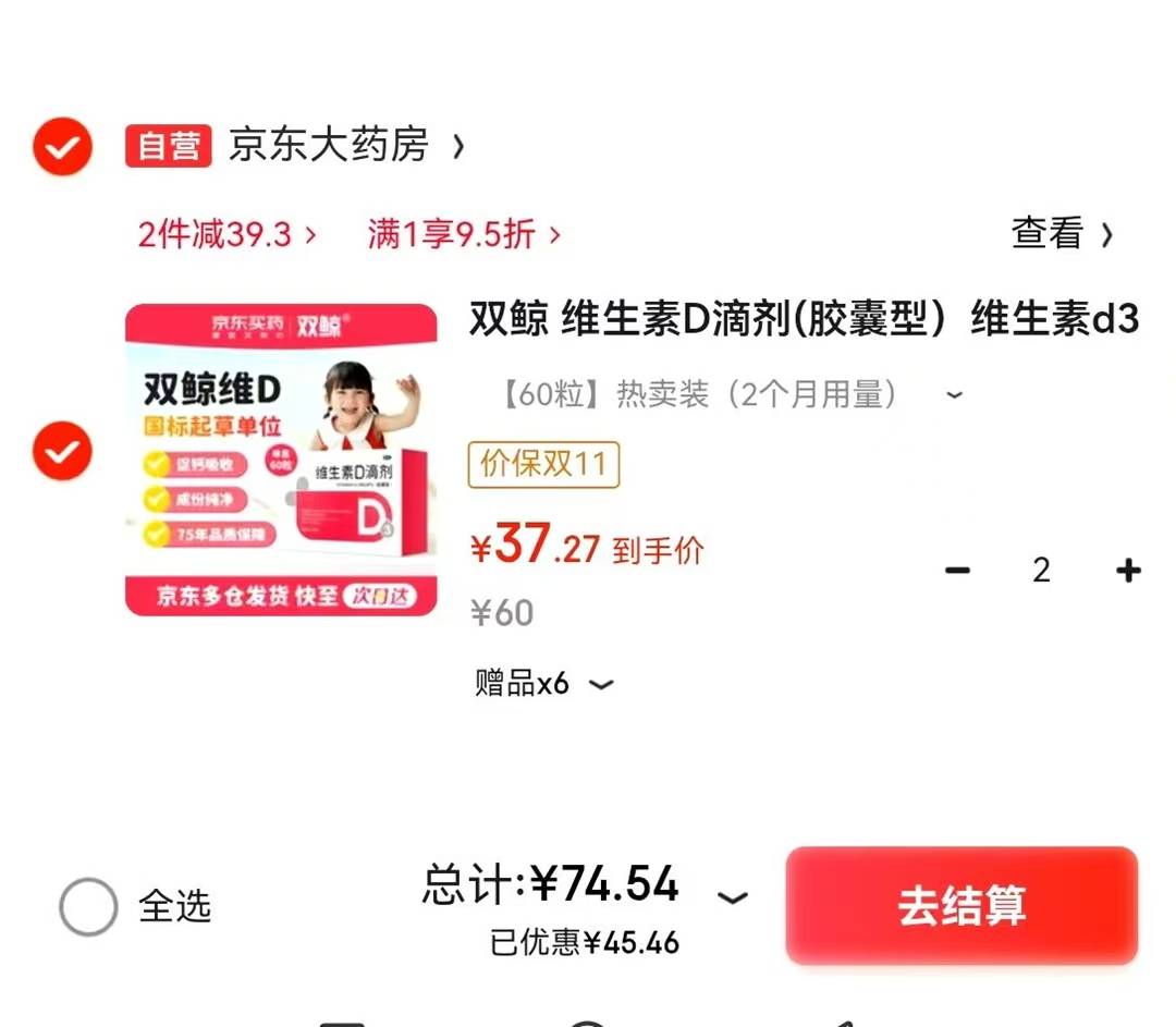 补贴豪車!自营双鲸拍2! 维生素D3滴剂*60粒