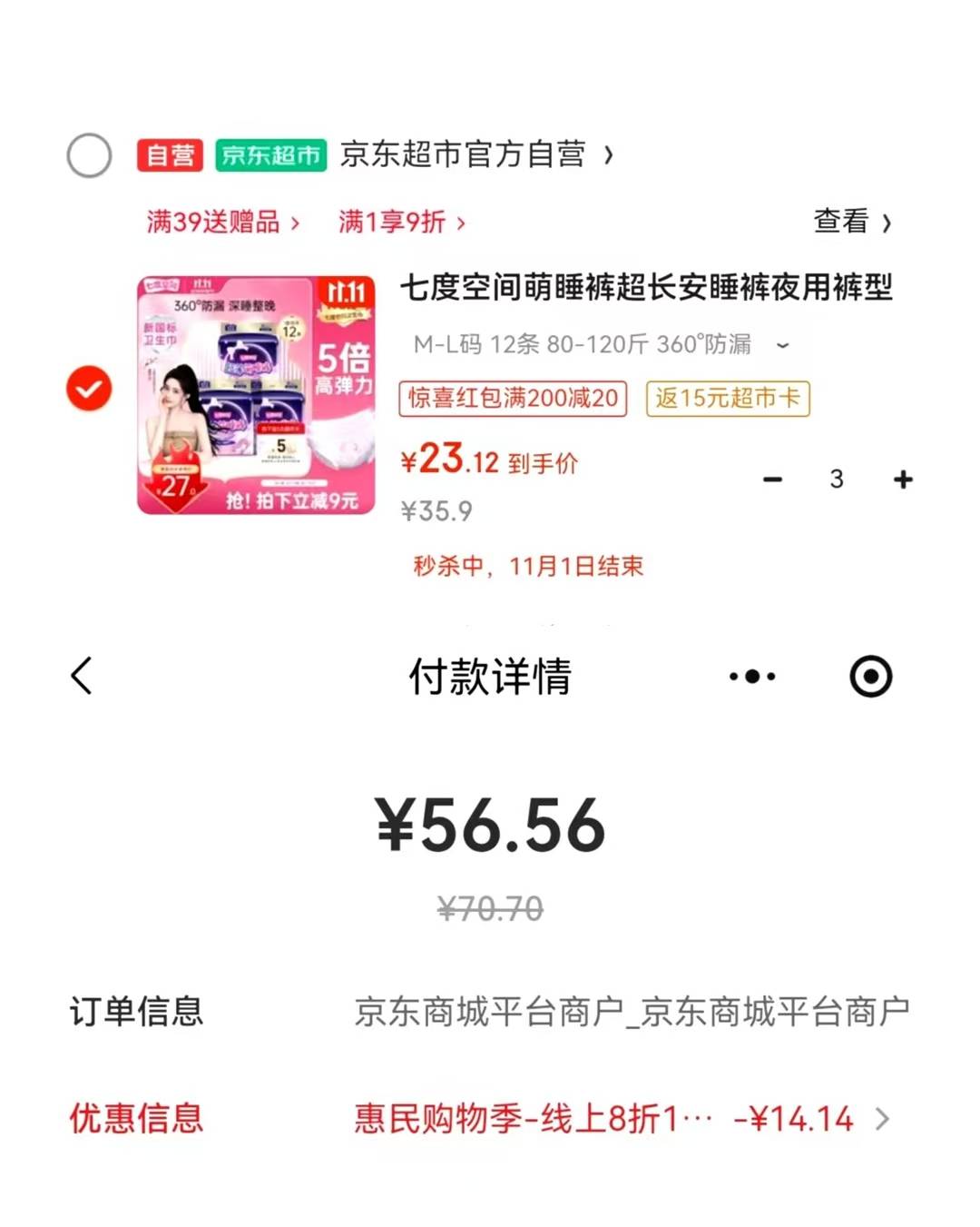 国补訷忦!七度空间車①先领200-20补贴券https://u.jd.com/pGc1KbQ②拍3! 萌睡安心裤12片https://u.jd.com/prcMDZk③重点: 加車去app洁算选云闪付有国补8折——————♦56.5亓!给15超.市卡*才折1.1/条! 小仙女上車*国补只1次!拍6単忦同