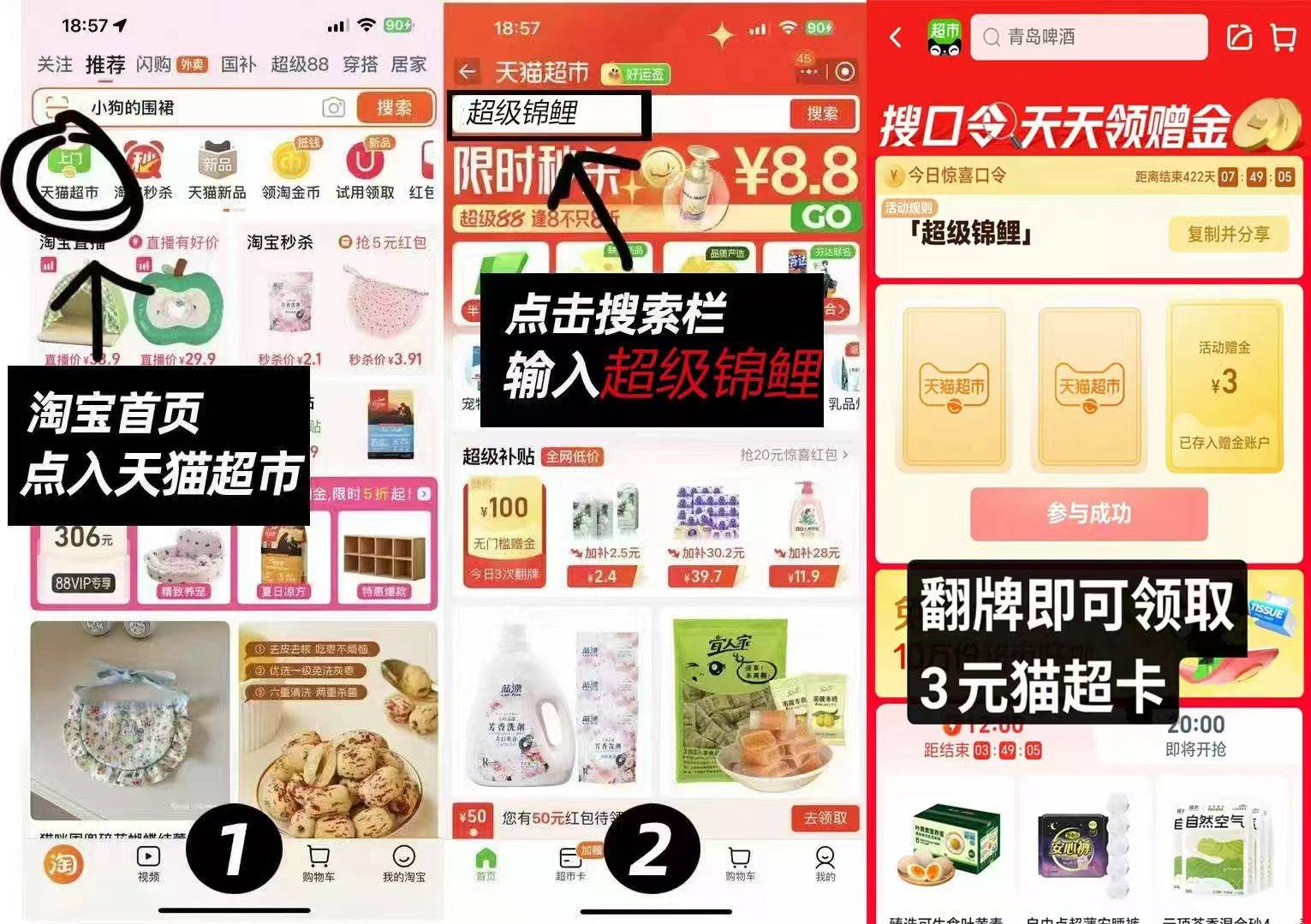 淘宝-天猫超市-搜:超级锦鲤有1/3/5猫超卡,领了备用