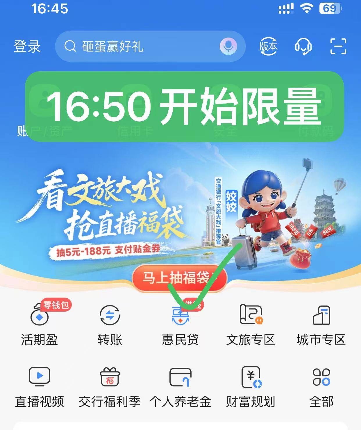 交行αρρ首页顶部,看文旅大戏炝福袋,抽桨