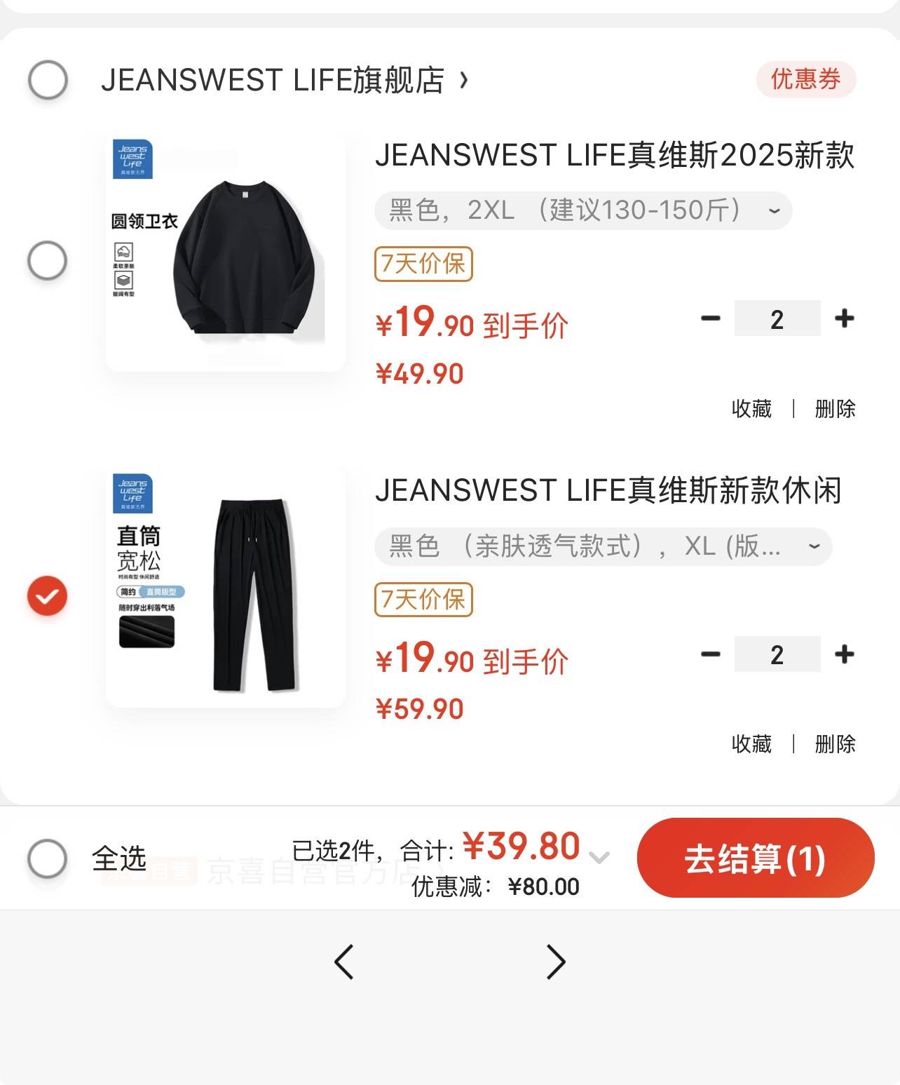 补贴炒底!真维斯男装車先抢 60-25补贴券http://z.mtpop.com/5gmv任选 2 件真维斯圆领卫衣https://u.jd.com/TahwzQU或任选 2 件真维斯长筒休闲裤https://u.jd.com/TDmWL0q——————♦到手两件 39.8 元 折单件 19.9 元*卫衣和休闲裤只能选一种