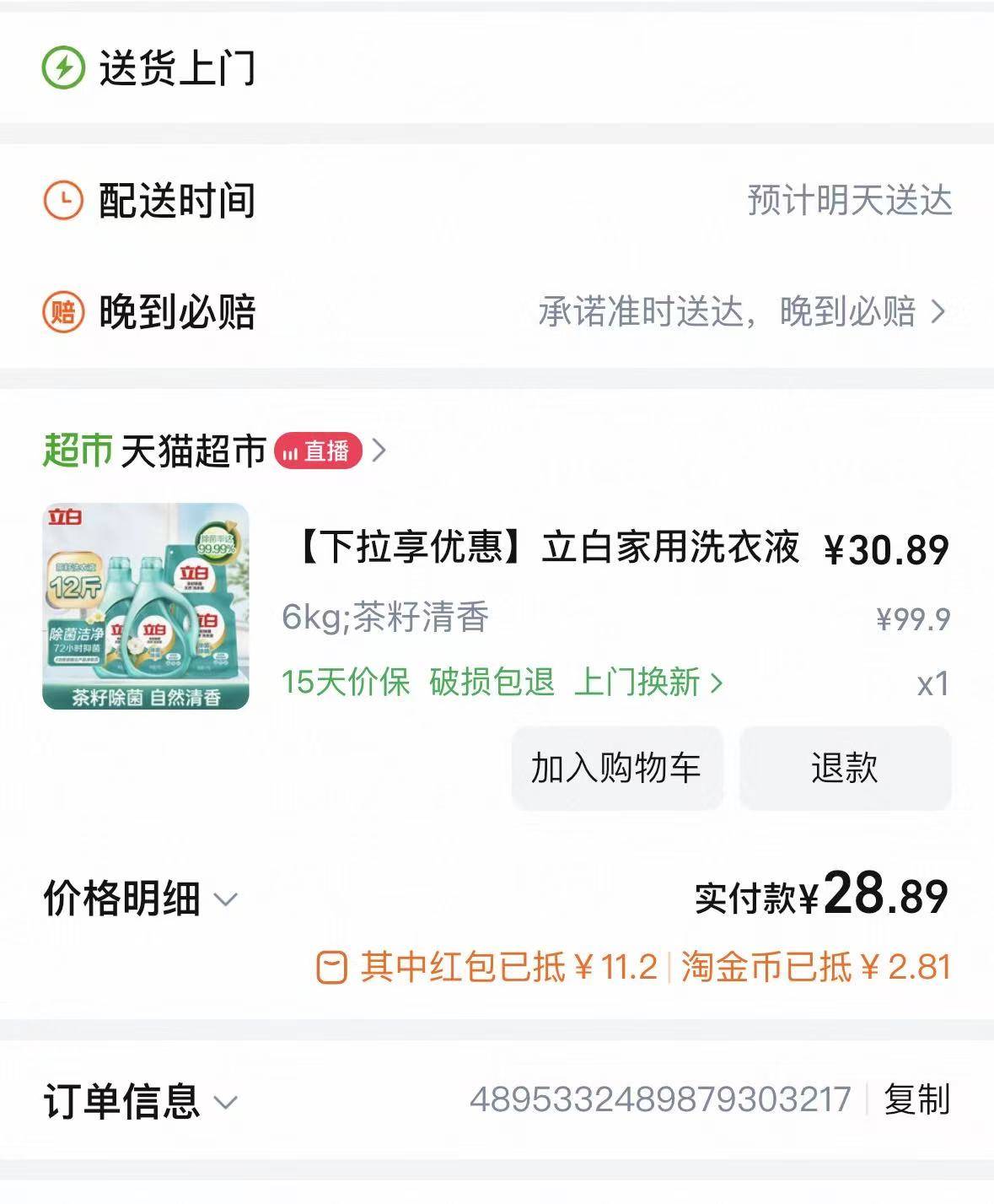 需要洗衣液的去!!!!!!这个复活了 现在差不多28-30 12斤 速速下 够用一年了❗12斤立白洗衣液28以内拿下-目前有超级补贴抓紧买!猫超的9$VZFXfOSYoED$:// MF3084复制打开TB下拉详情拍 快