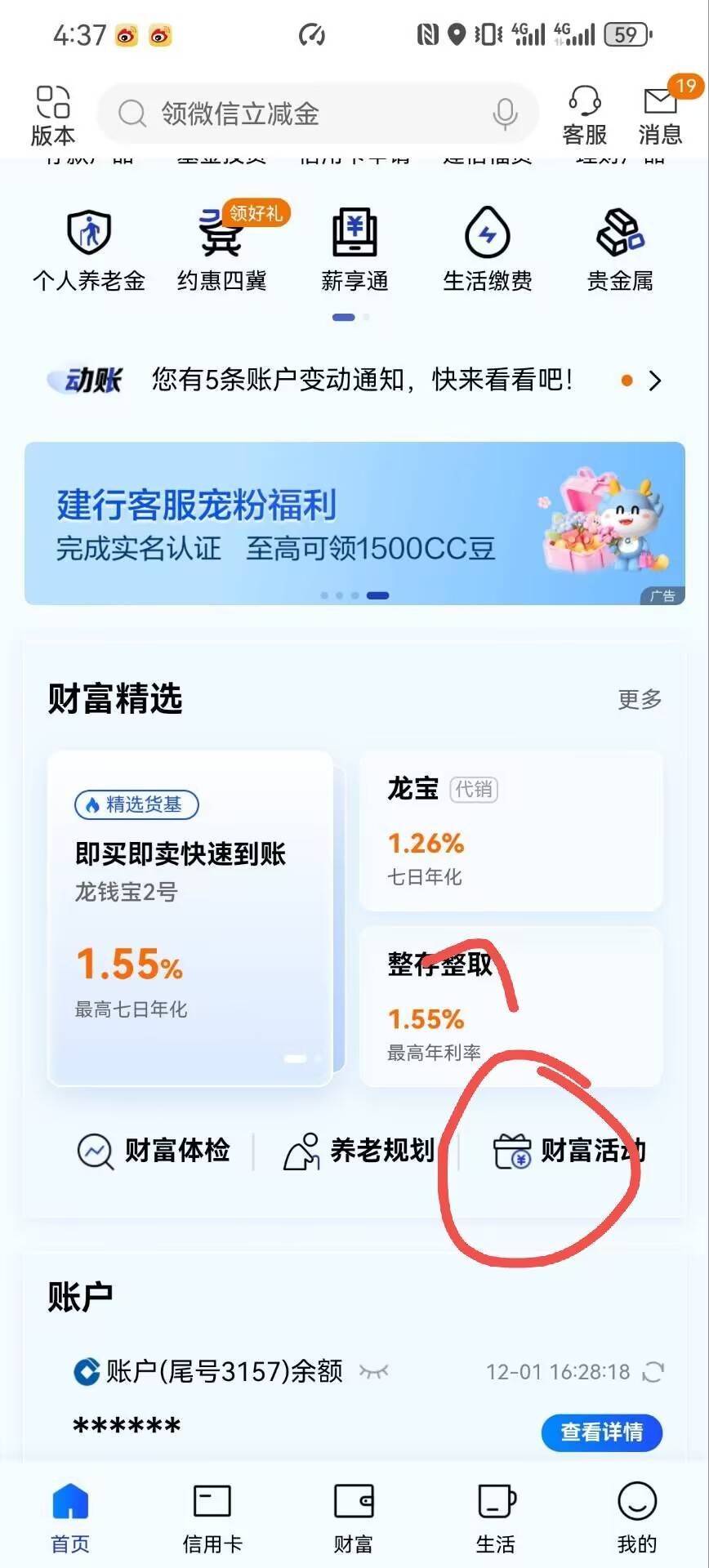 建行app 主页财富活动 主会场摇筛子活动 有立减金