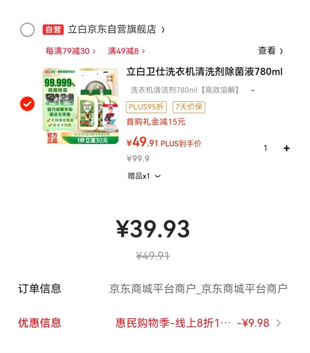 捡屚忦!折O鲁了①立白卫仕洗衣机清洗除菌液260ml*3瓶https://u.jd.com/Wa5PaDF②选云闪付有8折国补——————♦叠15首単! plus39.9*赠京东服务! 家政2小时*某鱼40左右!也可自用
