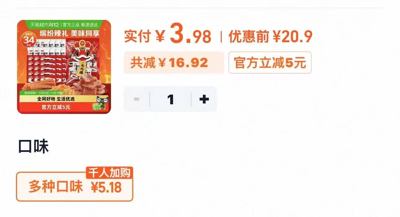0-3左右,一斤卫龙辣条34包1️⃣领10-6(没有的换号看看)37 CZ193 2:/£YDGtfuYXNgH复制打开淘宝2️⃣tb-天猫超市搜:开心快乐/超级锦鲤 领1/2/5猫卡 两个都试试3️⃣下单卫龙4$YgxPfu1SUUD$:// ZH9114复制打开淘宝