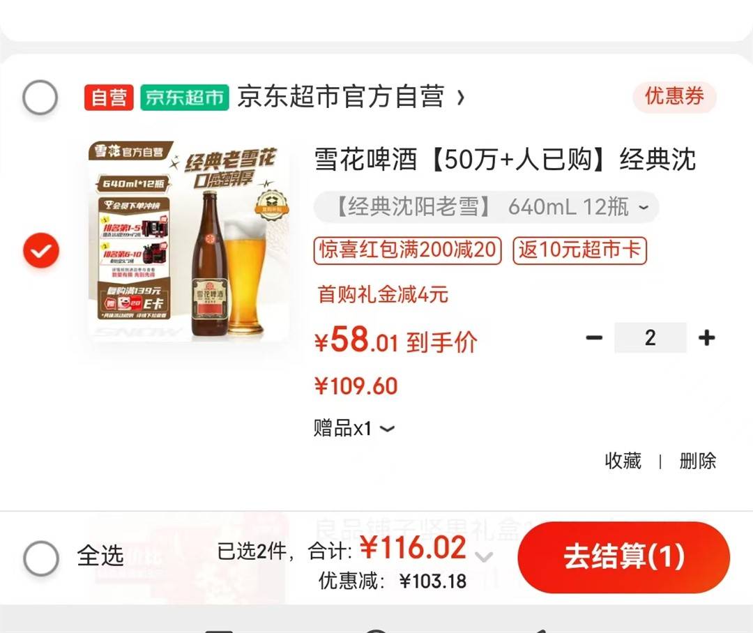 小神忦!老雪花啤酒点打开京东跳转app领200-20补贴券https://u.jd.com/A6cFPKX再领200-20黑五券https://u.jd.com/AGjbElF拍2! 老雪花640ml*12瓶https://u.jd.com/AgjK6Me——————♦120亓! 给10超.市卡*首单再减4! 低至53/件*过年聚会多!这忦屯点