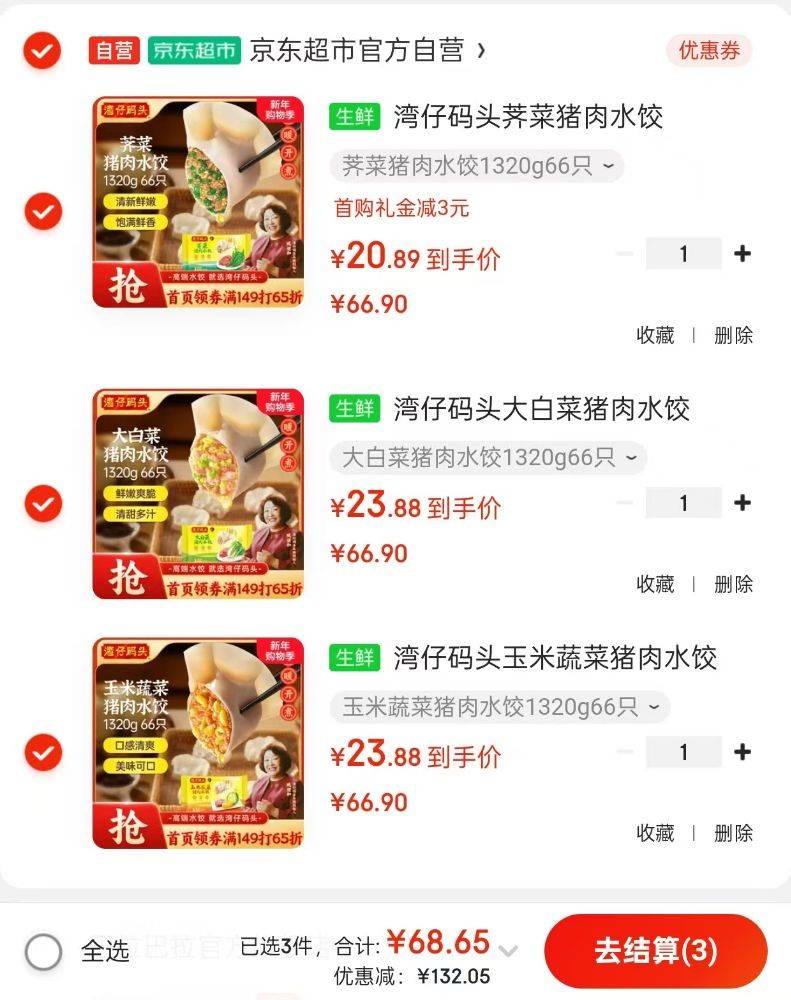 JD自营湾仔码头豪车先领2张券https://u.jd.com/EgMo3qhhttps://kzurl17.cn/tlm8DJ湾仔码头 水饺1320g66只https://u.jd.com/EOK8IsRhttps://u.jd.com/EgKi76chttps://u.jd.com/EaKbZFshttps://u.jd.com/ErMFlcZhttps://u.jd.com/EOK1N8Shttps://u.jd.com/ErKCBFP————任选3件71.66元❤️首购再省3元折22.89元/件,速度冲!