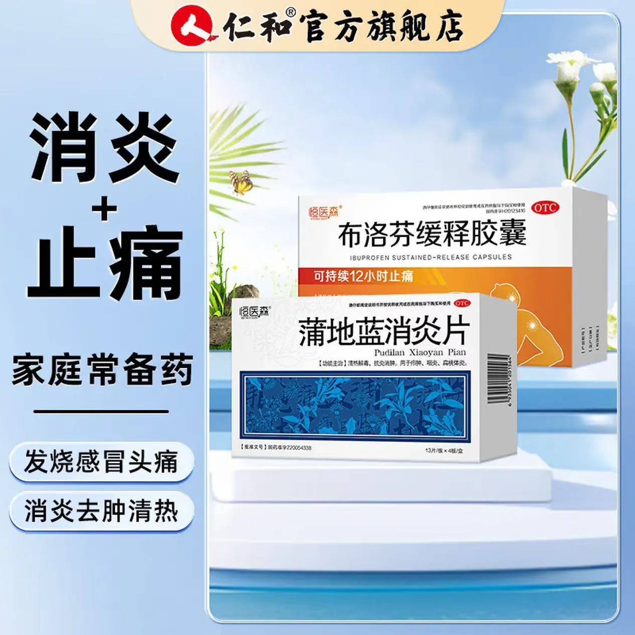 ——居家常备‼——恒医森 布洛芬缓释胶囊27粒+蒲地蓝消炎片52片组合