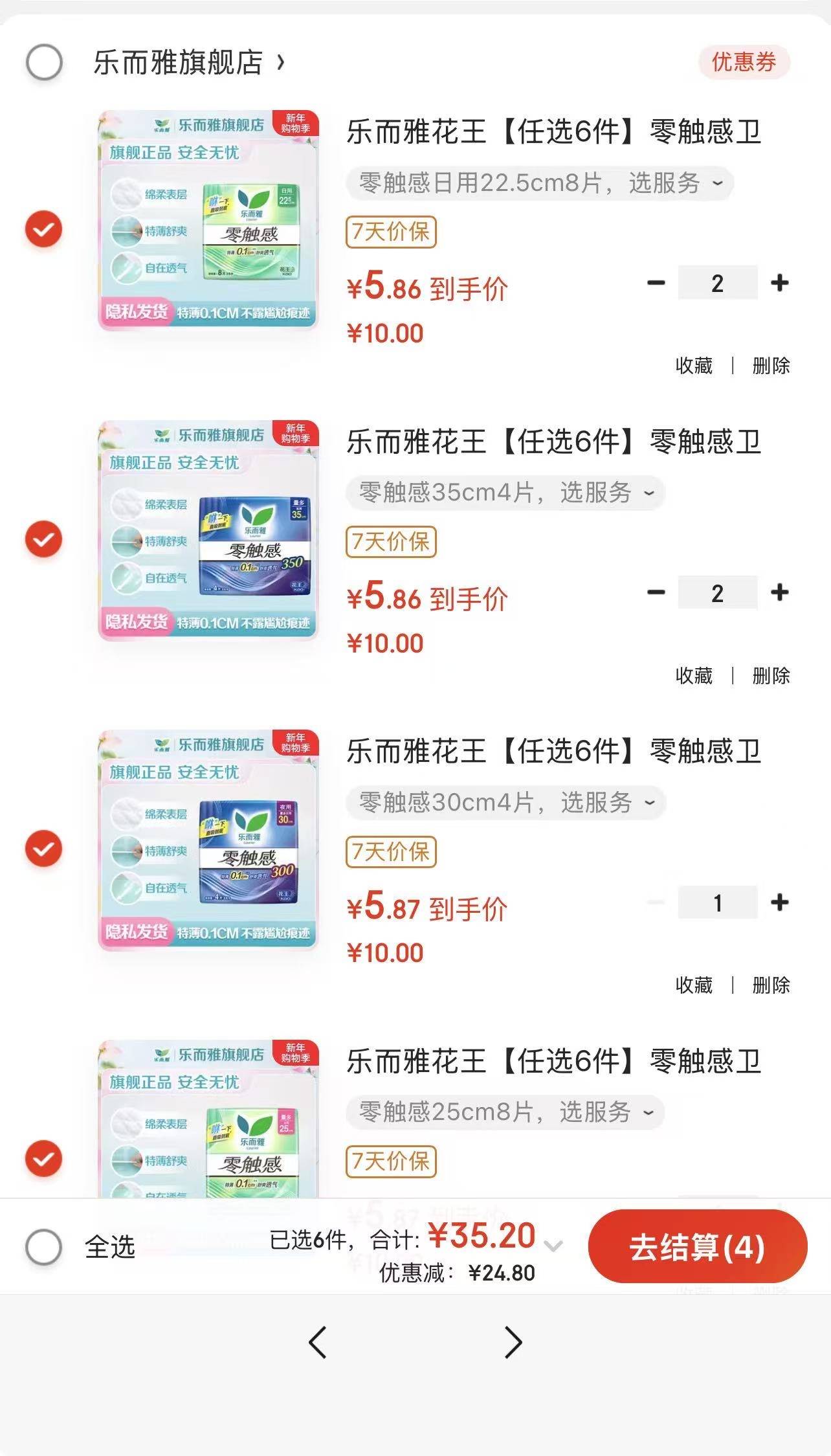 花王终于来了先领券http://t.cn/AXU15G21花王 乐而雅 零触感/超瞬吸https://u.jd.com/Ea3Zofz任选 6 件35.2 元折 5.8 元/包多规格可选,去挑一挑把~