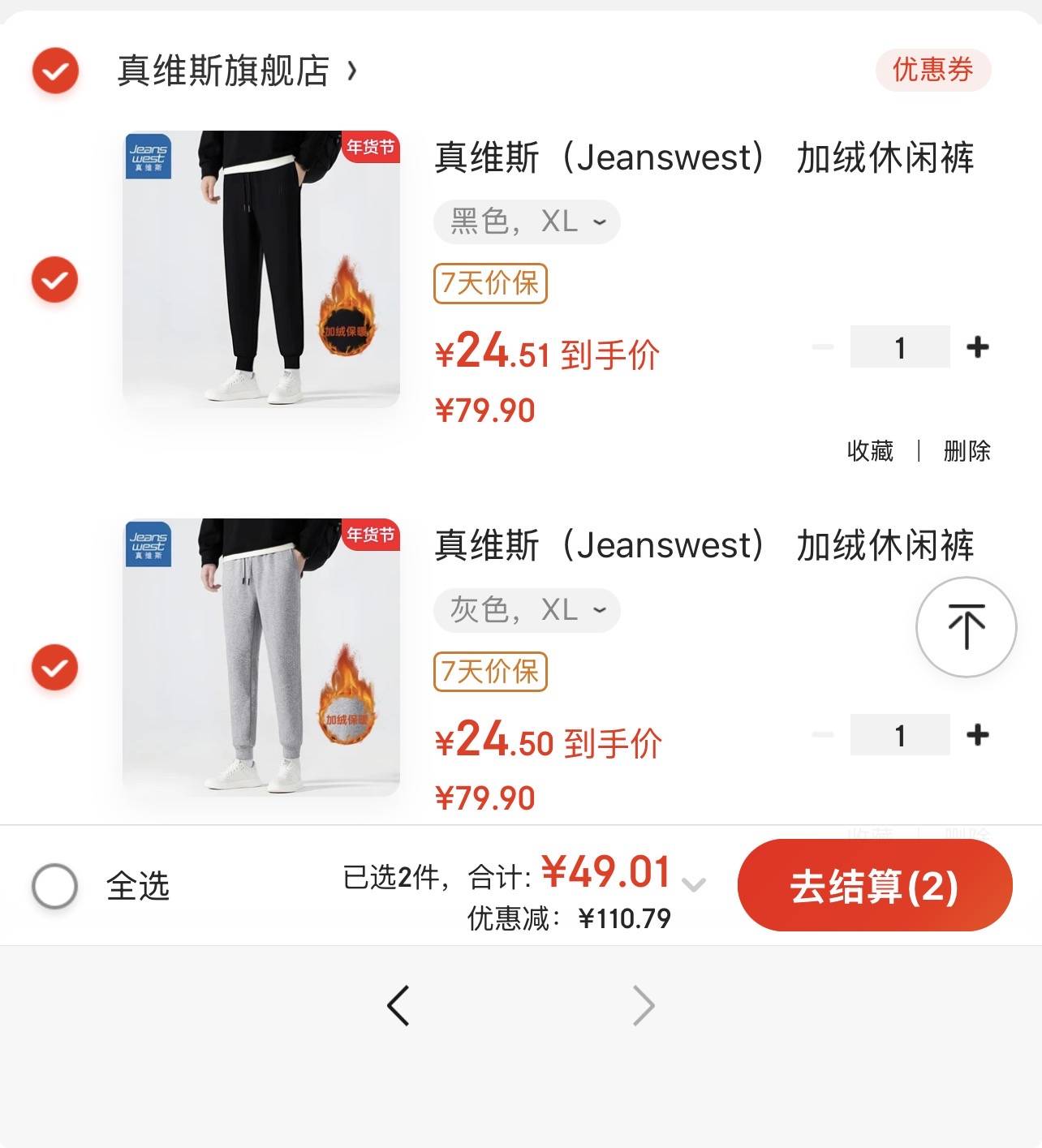 到手 49.8 元 折单件 24.9 元