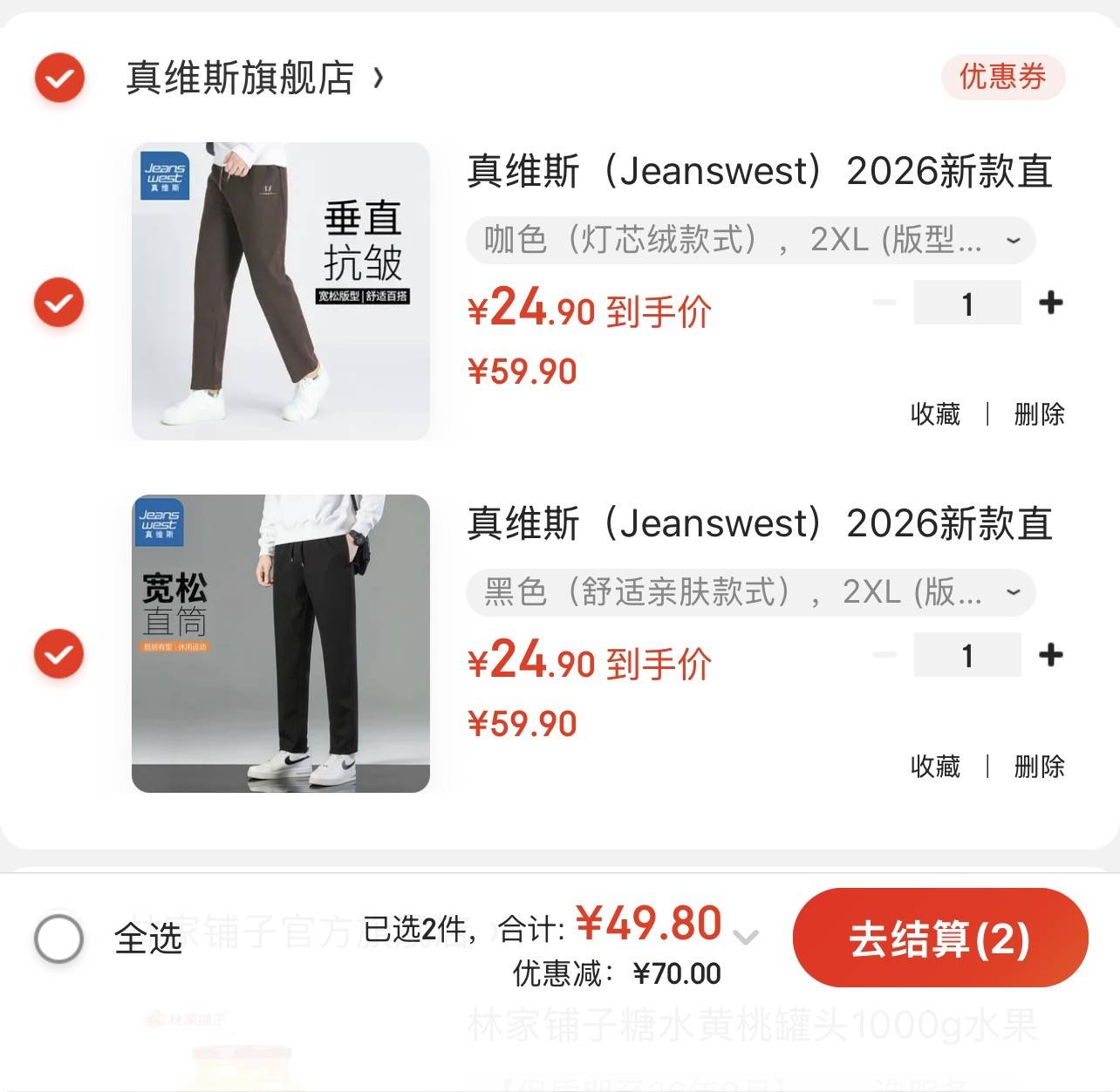到手 49.8 元 折单件 24.9 元