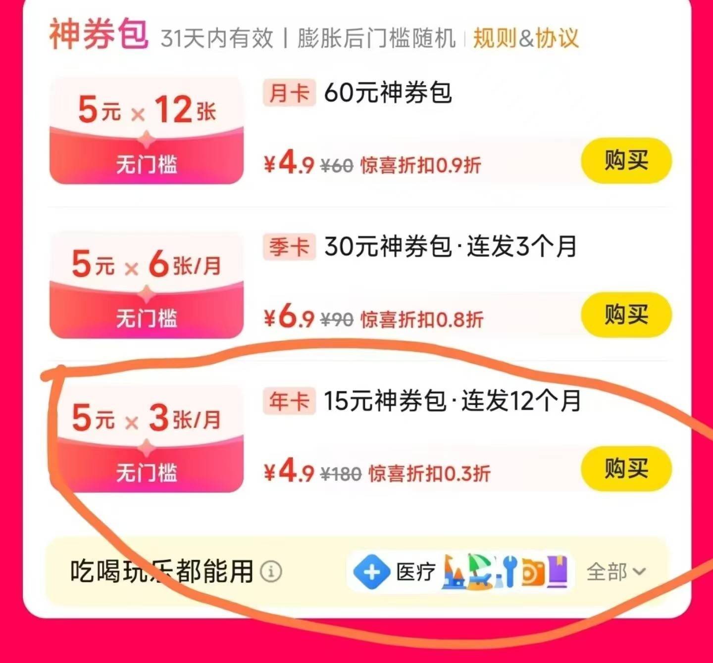 这忦上车了!美団年卡♦4.9亓 开美団年卡5亓券 X 3张 X 12月复制口令!打开美団【团口令】1 %复制信息#% 打开团App http:/¥a6ZTVmZTIxNWE¥一起领*有需上车!用一次就回本