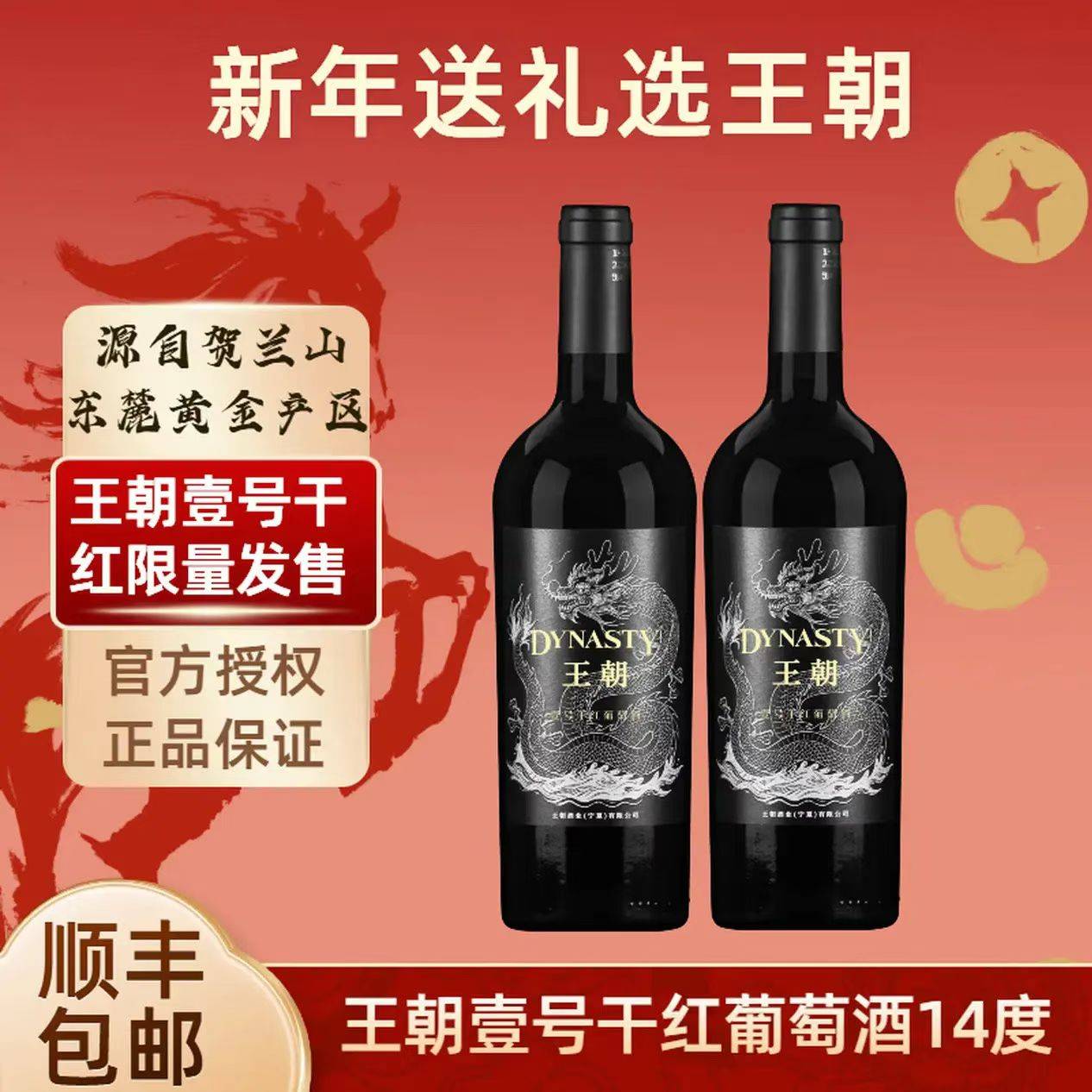 王朝红酒 壹号干红葡萄酒14度 宁夏贺兰山黄金产区 750ml*2瓶