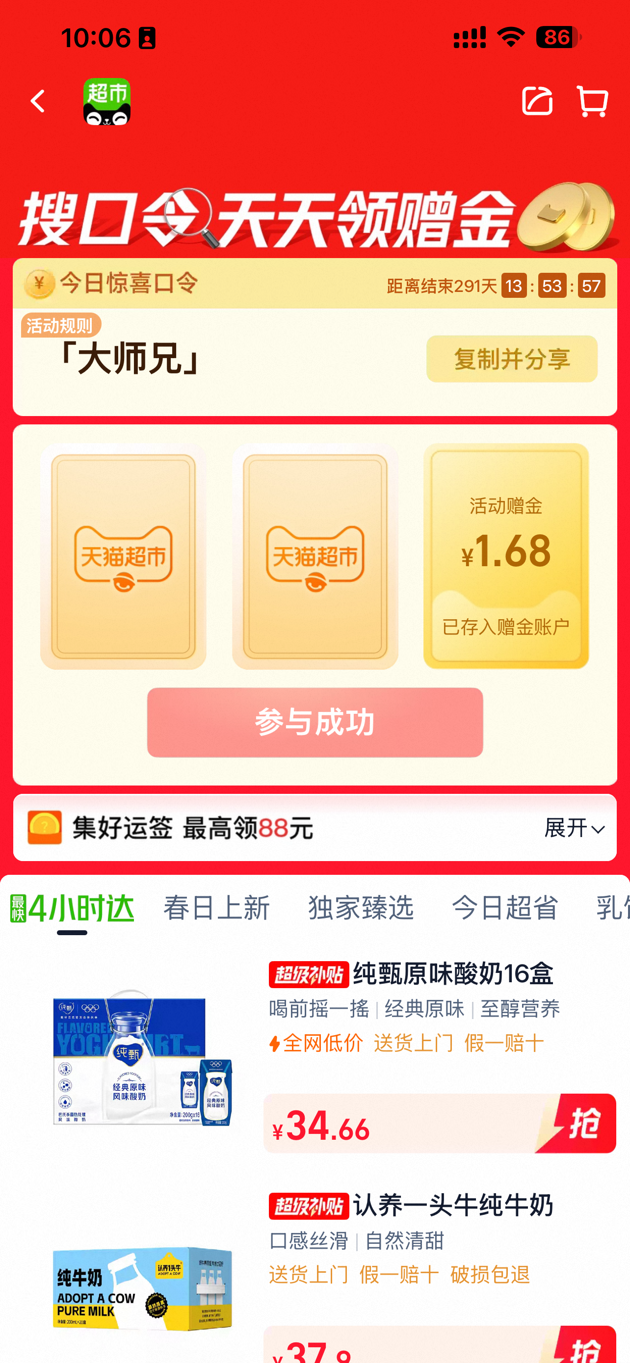 有反馈了试试哈 中了1.68