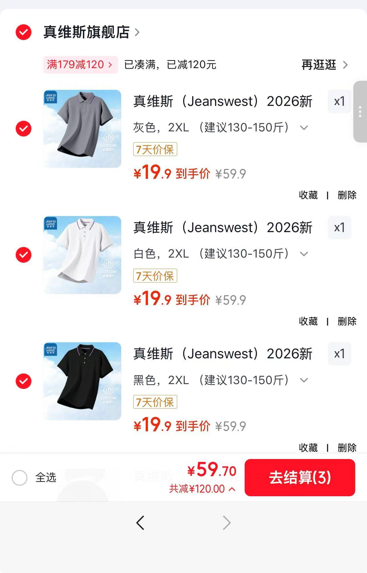 快‼真维斯polo杉神价了任选3件真维斯 POLO衫