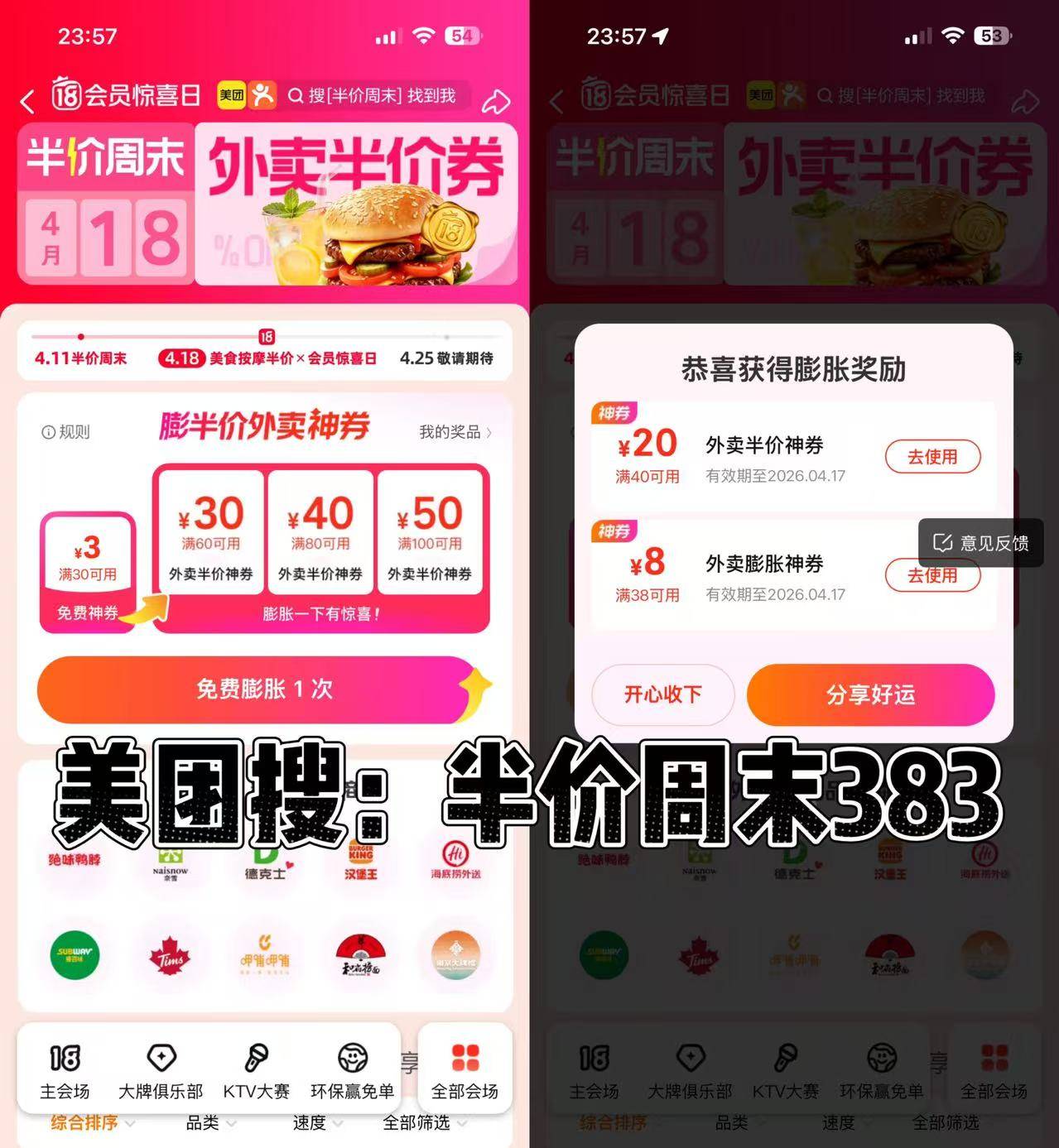 速❗美团搜:【半价周末383】