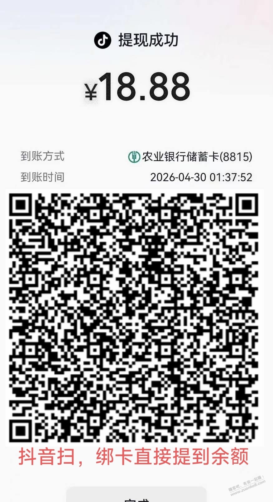 白捡18大毛,直接提到余额抖音扫,绑卡直接提到余额,大号有5.88,小号得了18.8